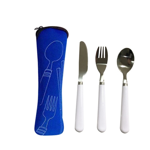Oem Vork Lepelmes In Geval Draagbare Reis Camping Wit Plastic Handvat Bestekset