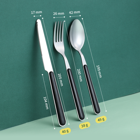 Food Grade Veilig Zwart Kleur Handvat Rvs Bestek Set Van Mes Vork Lepel